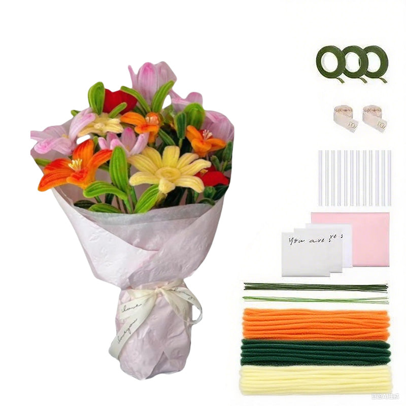 - Materials Included: Multicolored twisted sticks, high - quality wrapping paper, decorative ribbons, flower stamens, and other auxiliary accessories