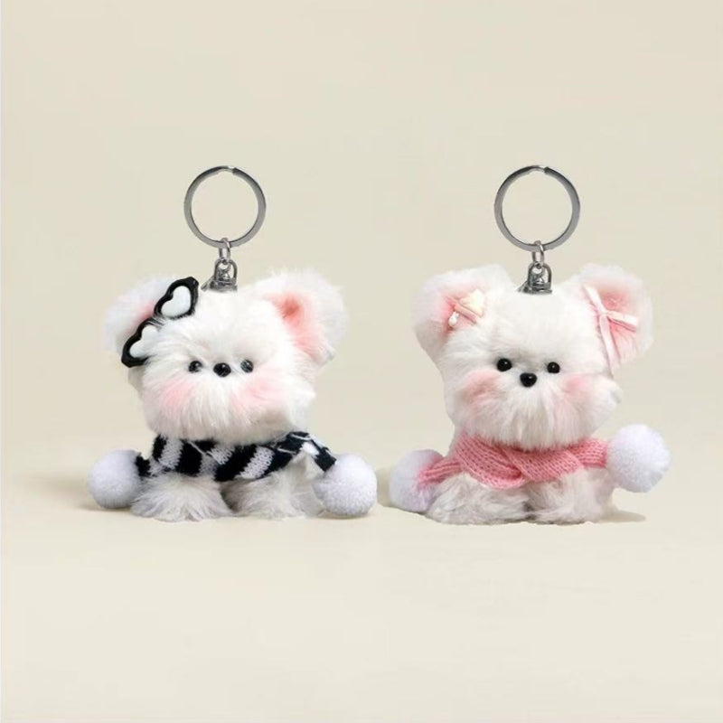 His & Hearts Pair Keychain - Cream Fluffy Dogs